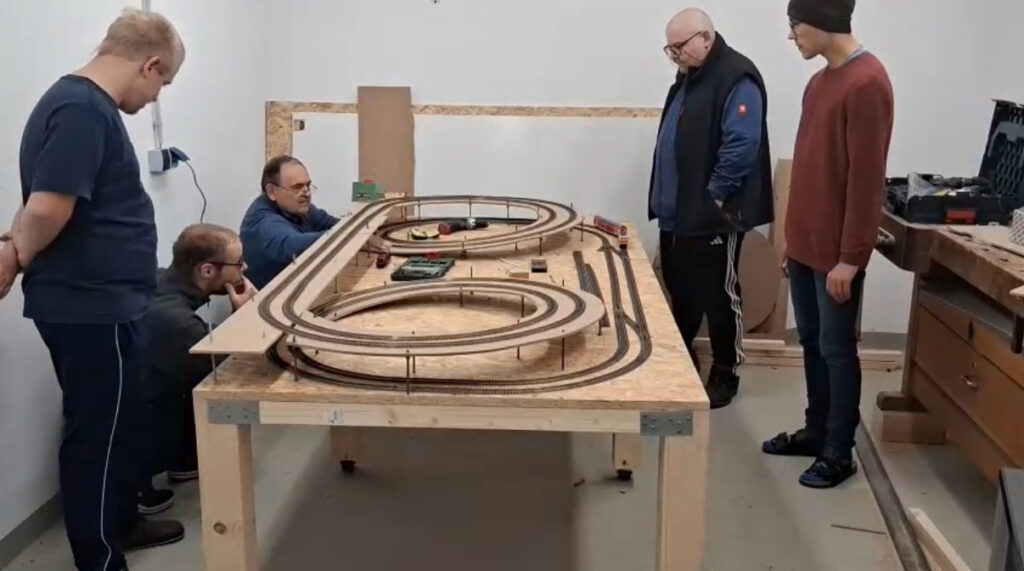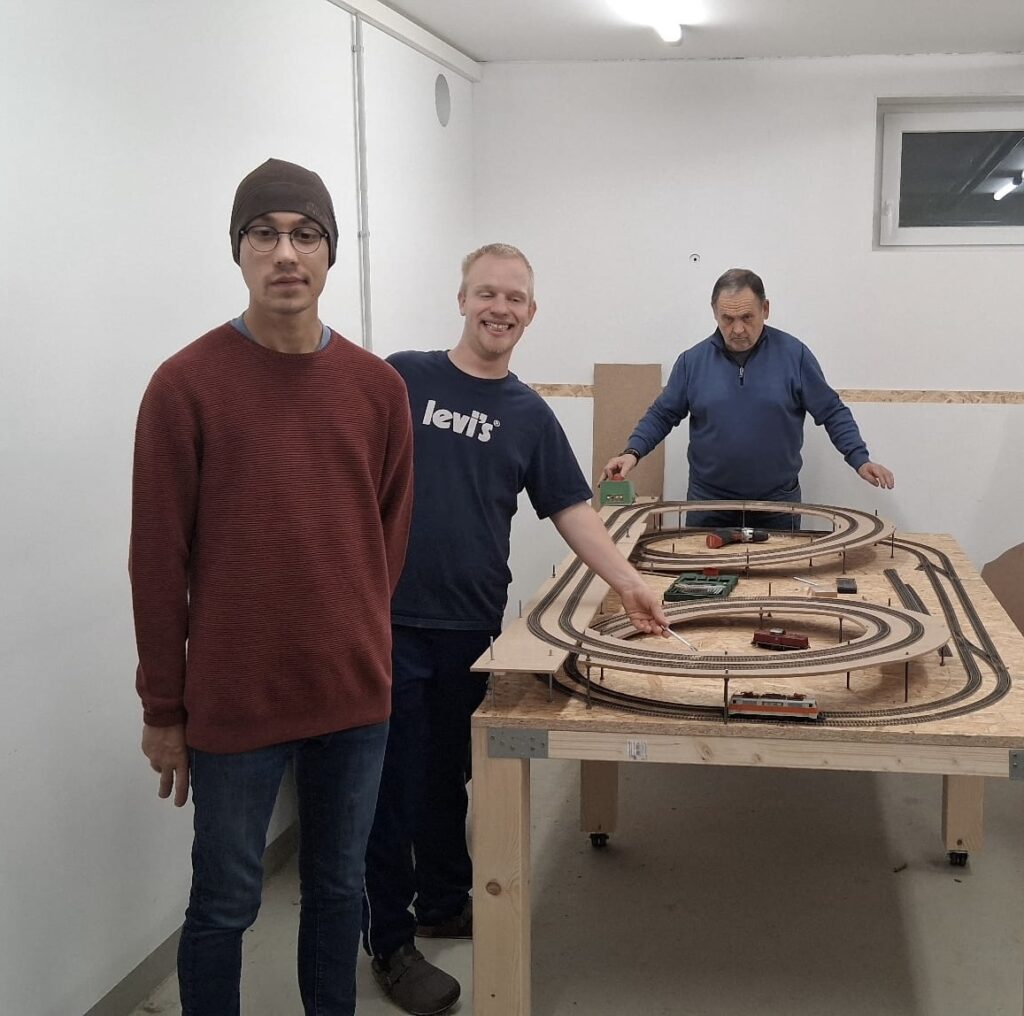Nach einer längeren Sommerpause steht nun die Grundstrecke der Eisenbahn durch das Neue Wohnen Coburg. In der letzten Woche konnten bei den ersten Testfahrten die zusammengetragenen Züge und Anhänger die Steigungen auf der Spur H0 ausprobieren.